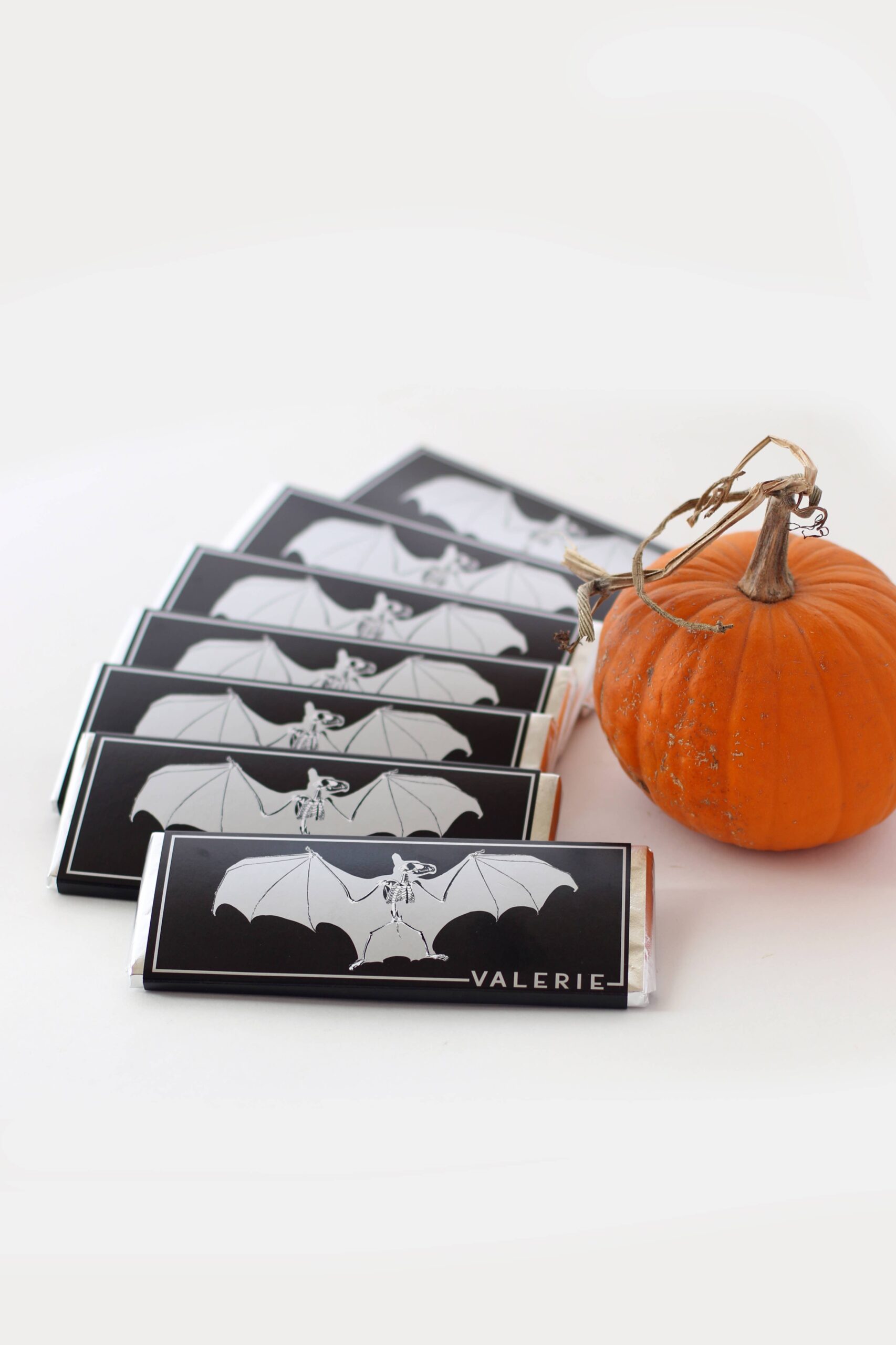 Bittersweet 72% chocolate topped with black lava salt and wrapped in metallic silver and black. Striking on shelves year-round, with added draw for Halloween. A bold, salty-sweet bar ideal for customers seeking dark elegance and unique flavor.