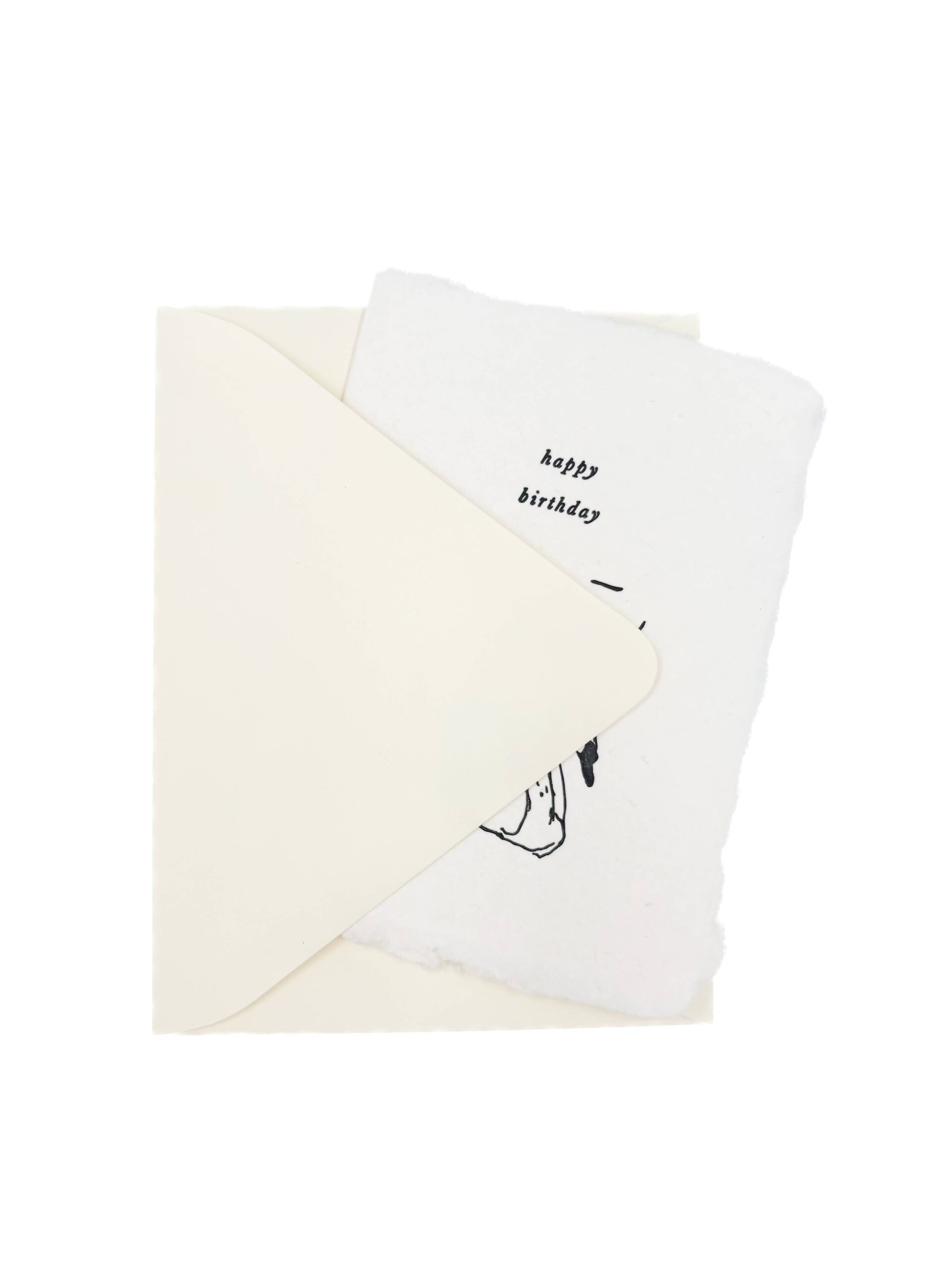 Soft white handmade paper with black letterpress ink.