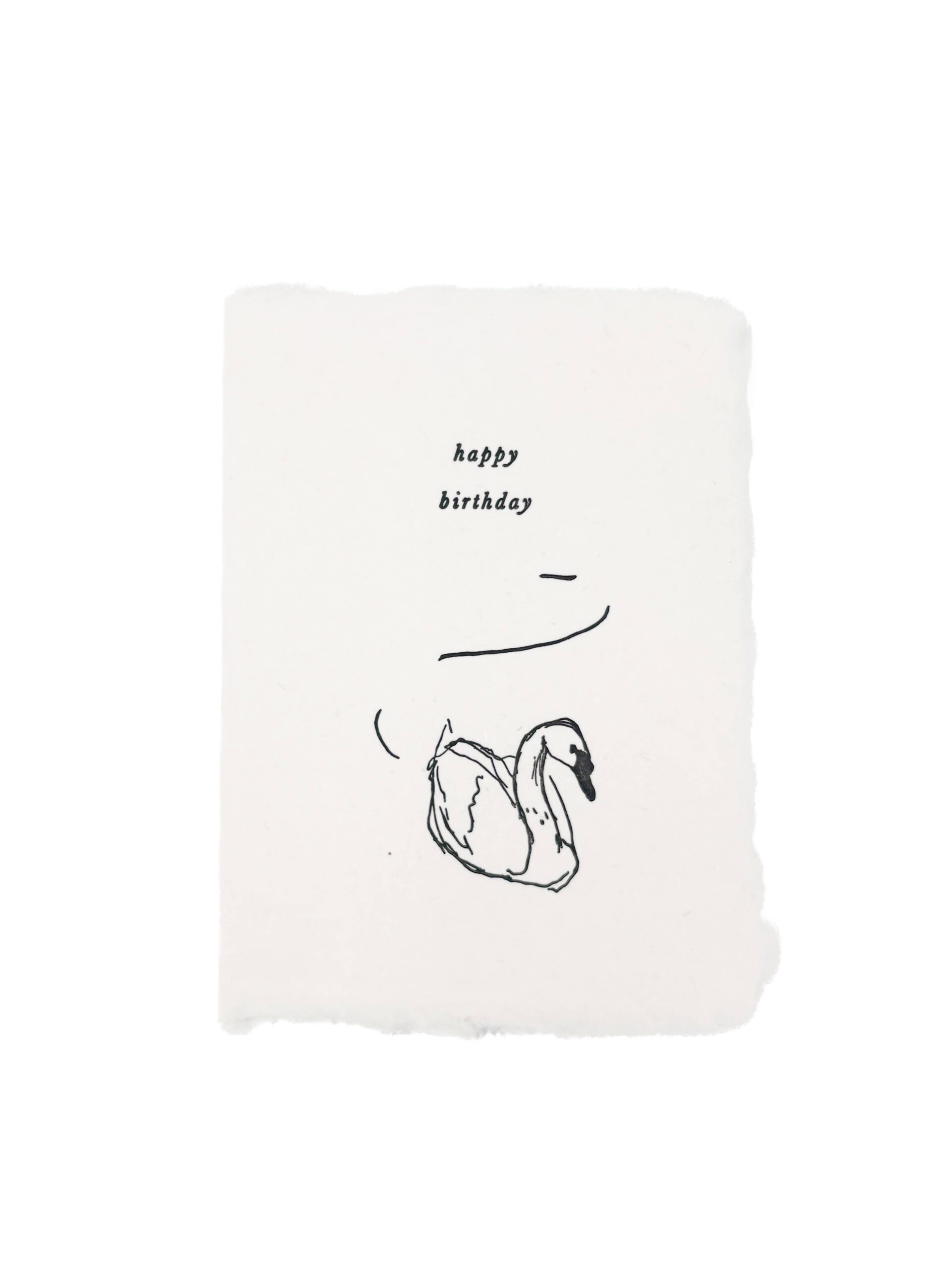 Card features an illustration of a swan and reads “happy birthday”.